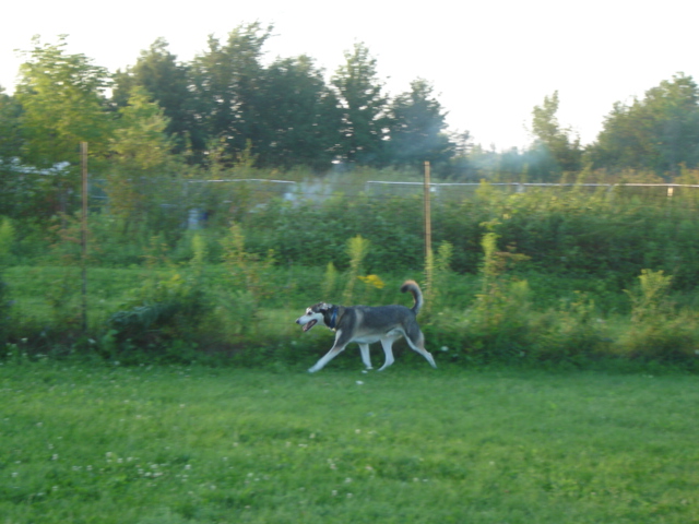Ky (Saluki) & Dante (Rotti X) enjoy a good run. August 2009